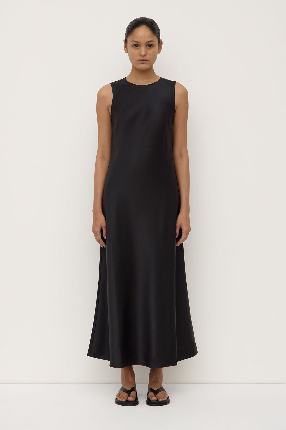 Designed to gently drape off the body, this midi dress is cut on the bias and features a back keyhole closure and bust dart detailing for added structure.