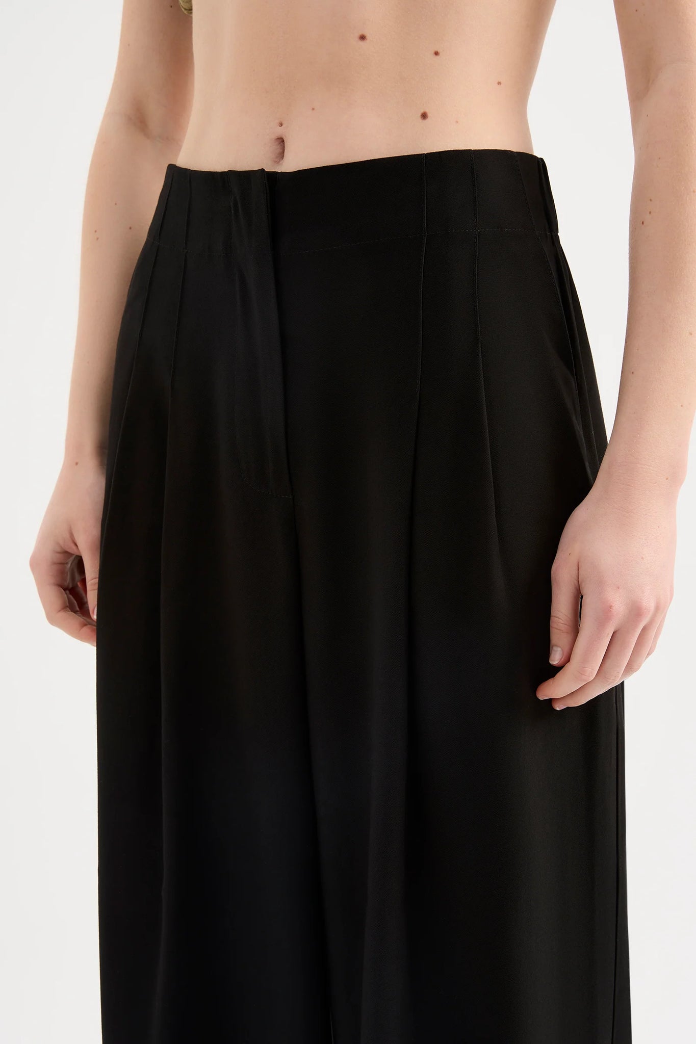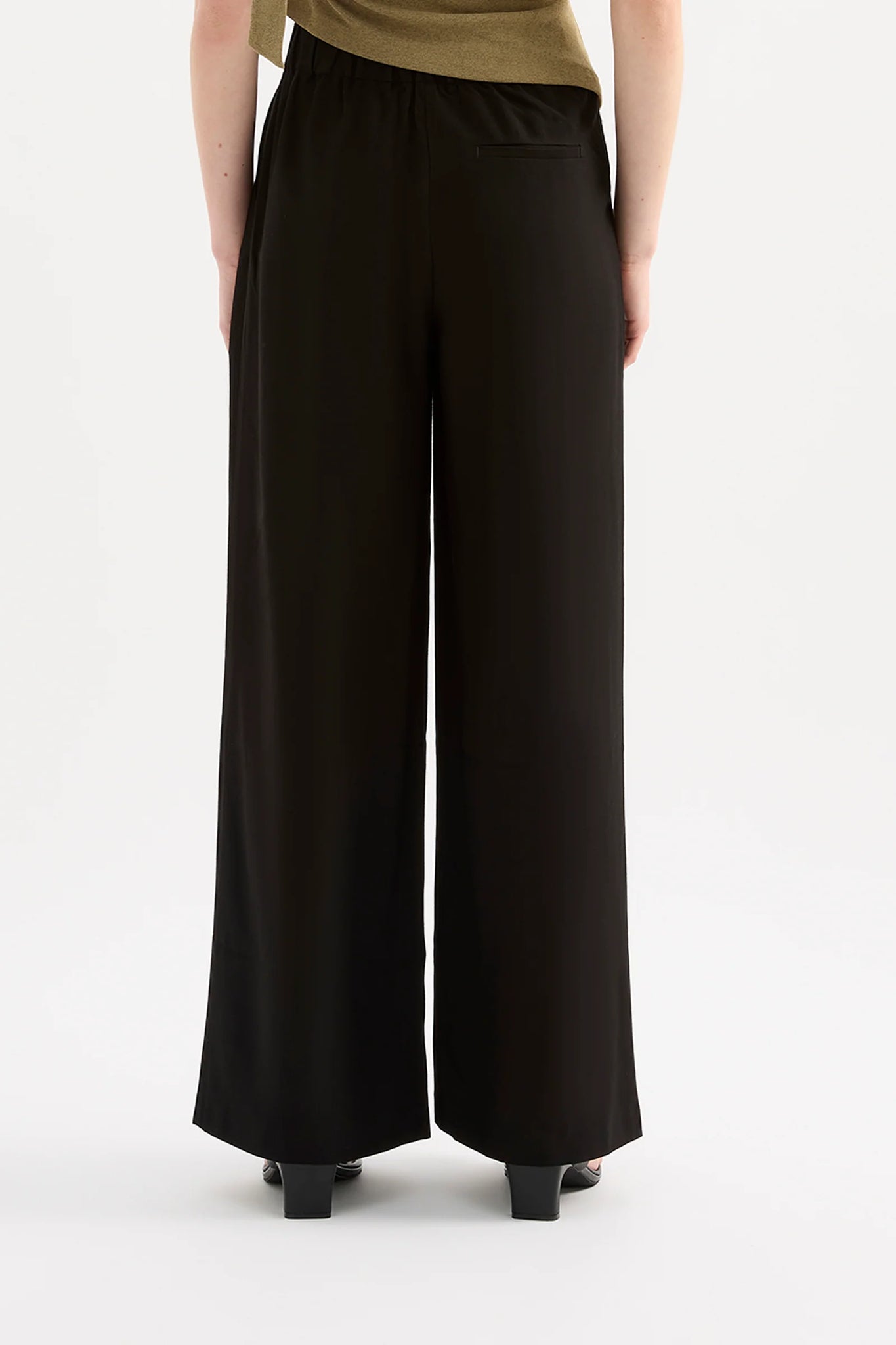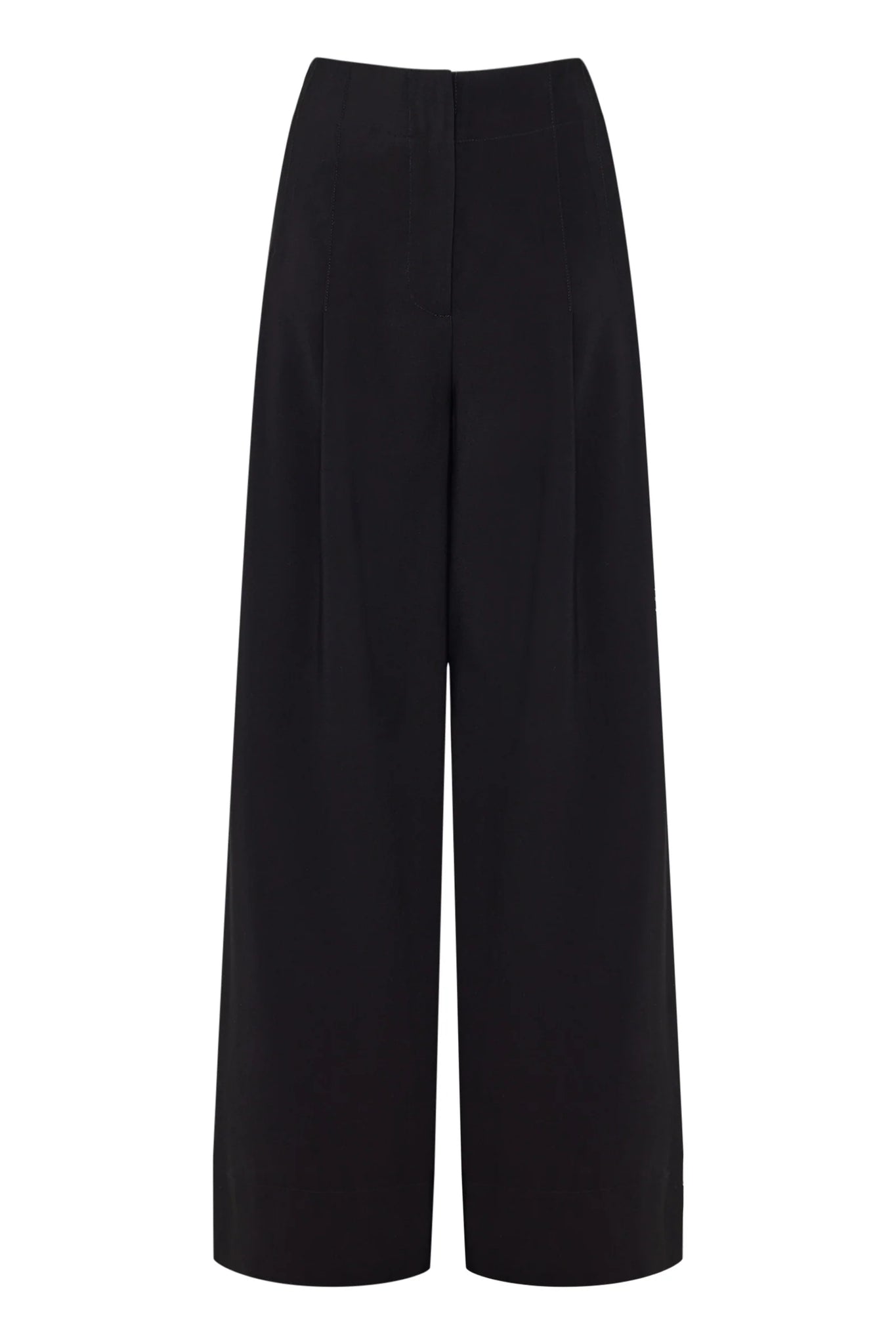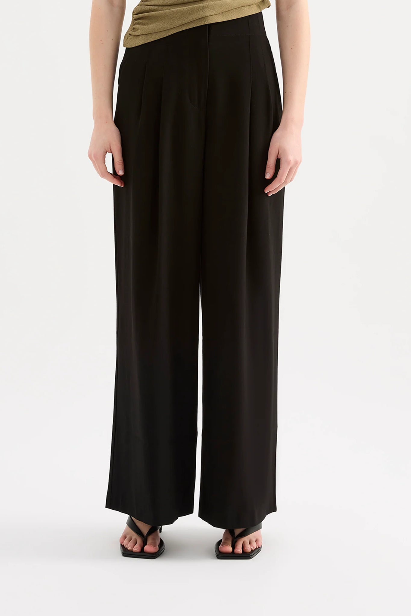 The Ryker Pant is made from a classic suiting fabrication which has a smooth, structured hand feel. The silhouette is a tailored fit with a high rise waist and wide leg. Features include clean finish waist with pleats, internal elastic at back waistband & concealed button and trouser hook closure.