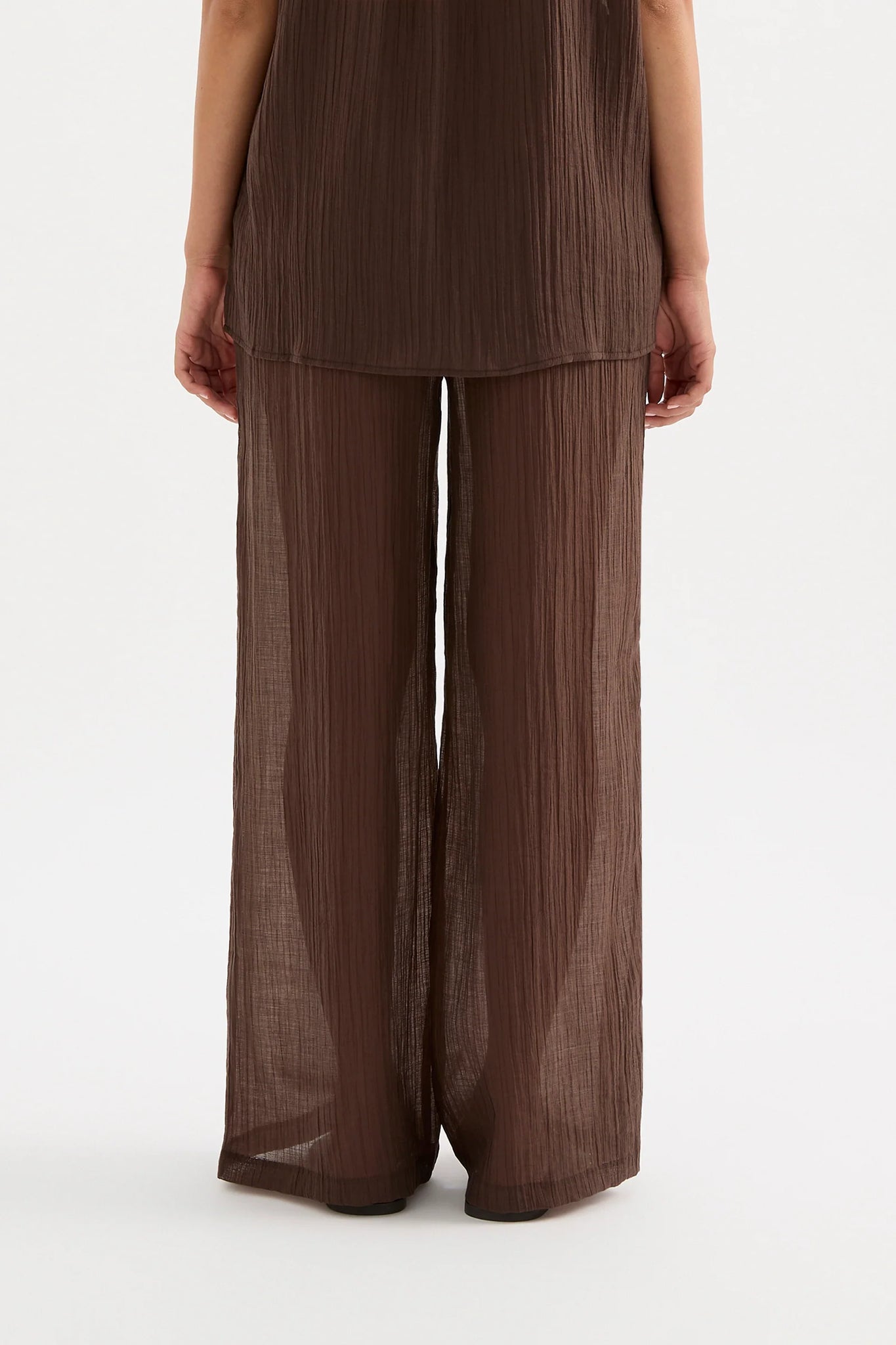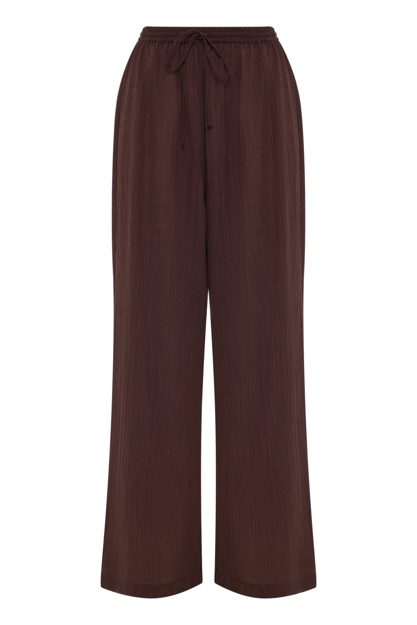 The Maxx Pant is made from a lightweight, crinkled fabric which has a dry hand feel. The silhouette is a relaxed, wide leg, full length pant. Features include an elasticated waistband, drawstring and side seam pockets.