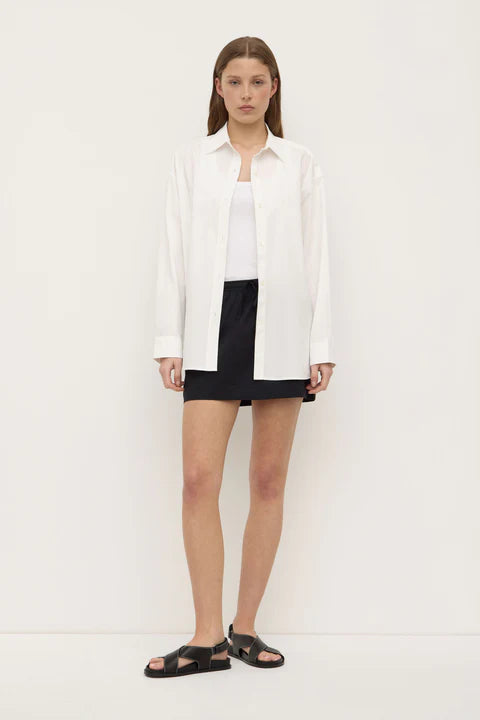 Crafted from a crisp cotton poplin, this mini skirt is designed to sit mid-rise and features an elasticated drawstring waistband for an adjustable fit.