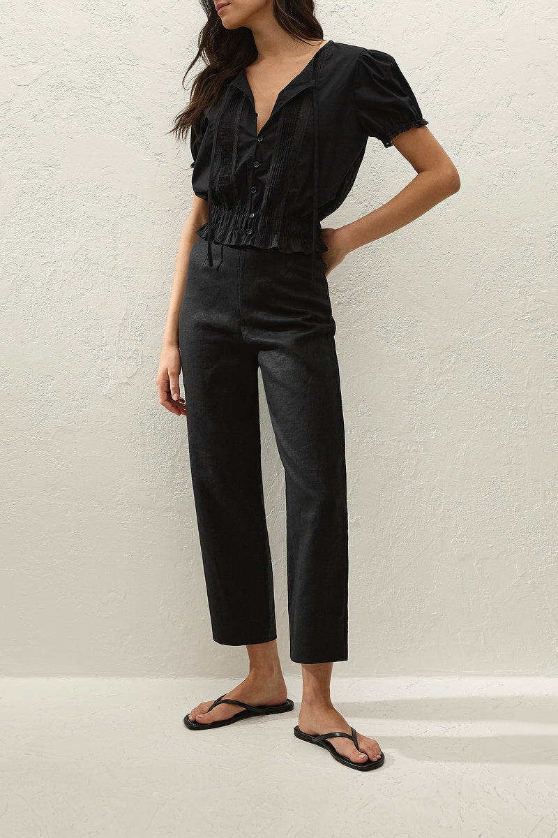 A vintage-inspired blouse, designed from a signature 100% cotton in a classic black.