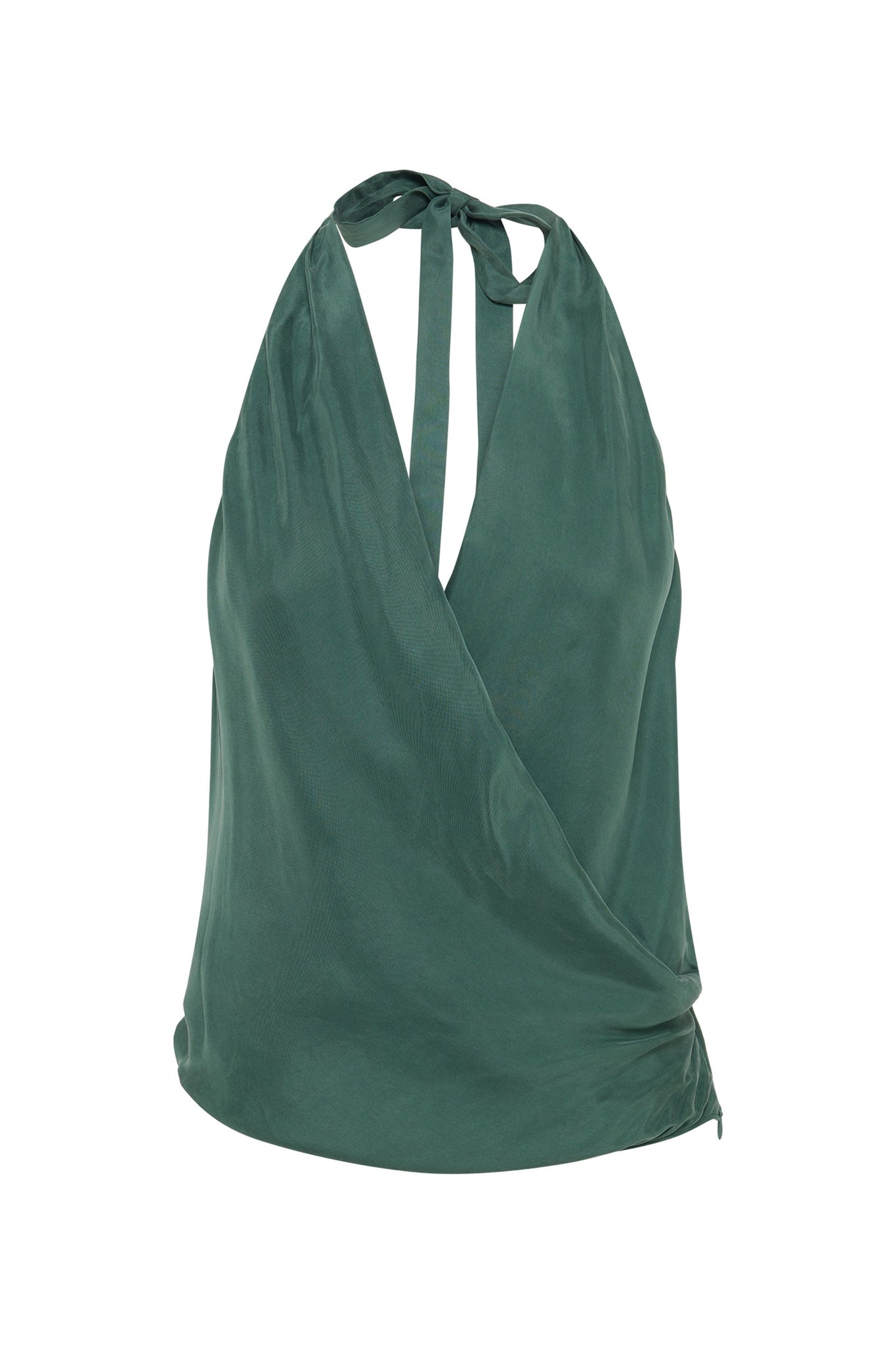 The Leon Cupro Top is made from a premium cupro fabrication with a soft, sueded hand feel. This halter neck top has a cross over draped neckline and low back. It finishes at the hip and has an invisible zipper in side seam for ease.