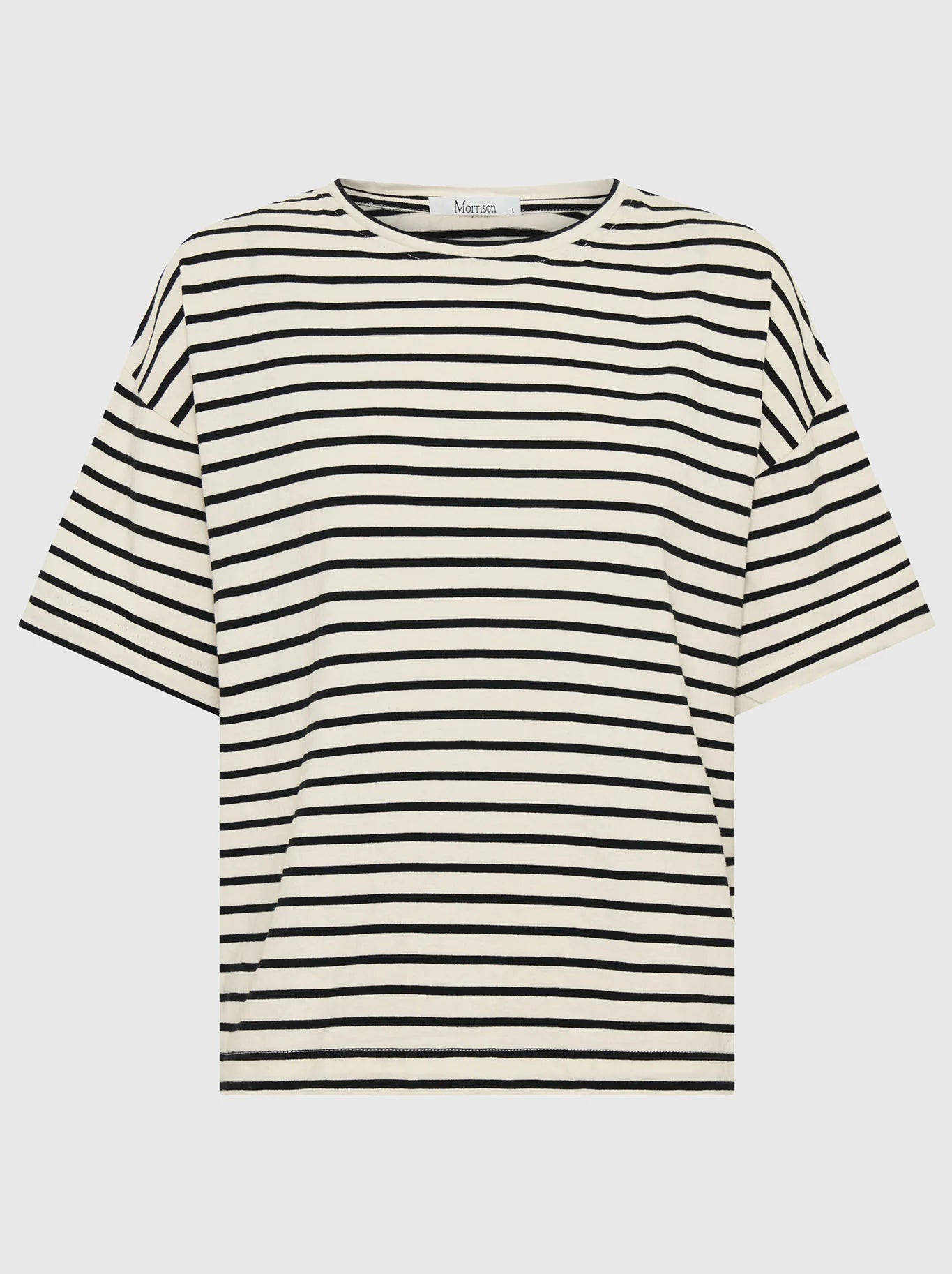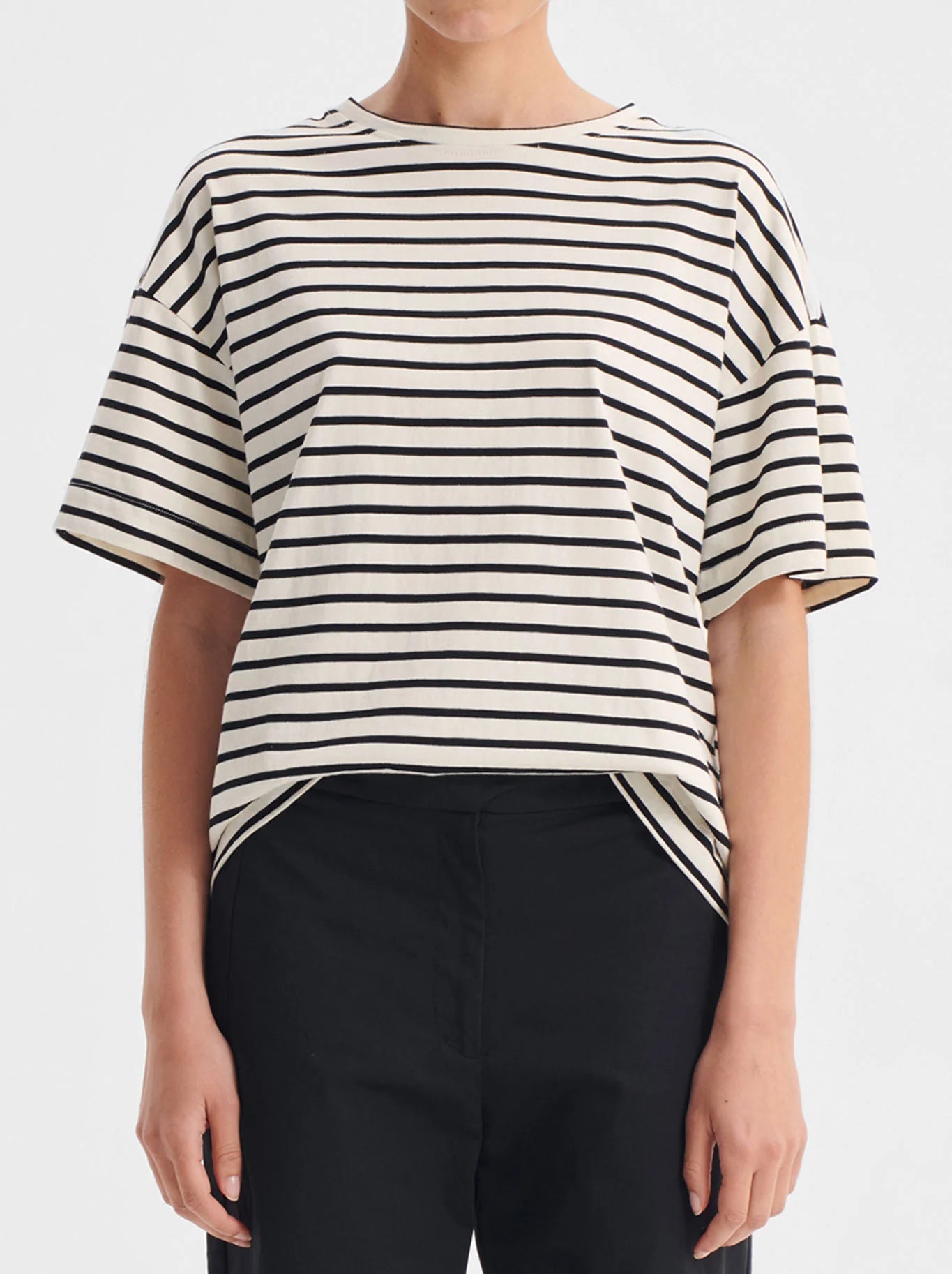 The Archie Stripe Tee is crafted from soft cotton jersey with a classic crew neckline, dropped shoulders, and short sleeves. Its boxy, relaxed fit makes it the perfect casual essential for everyday wear.