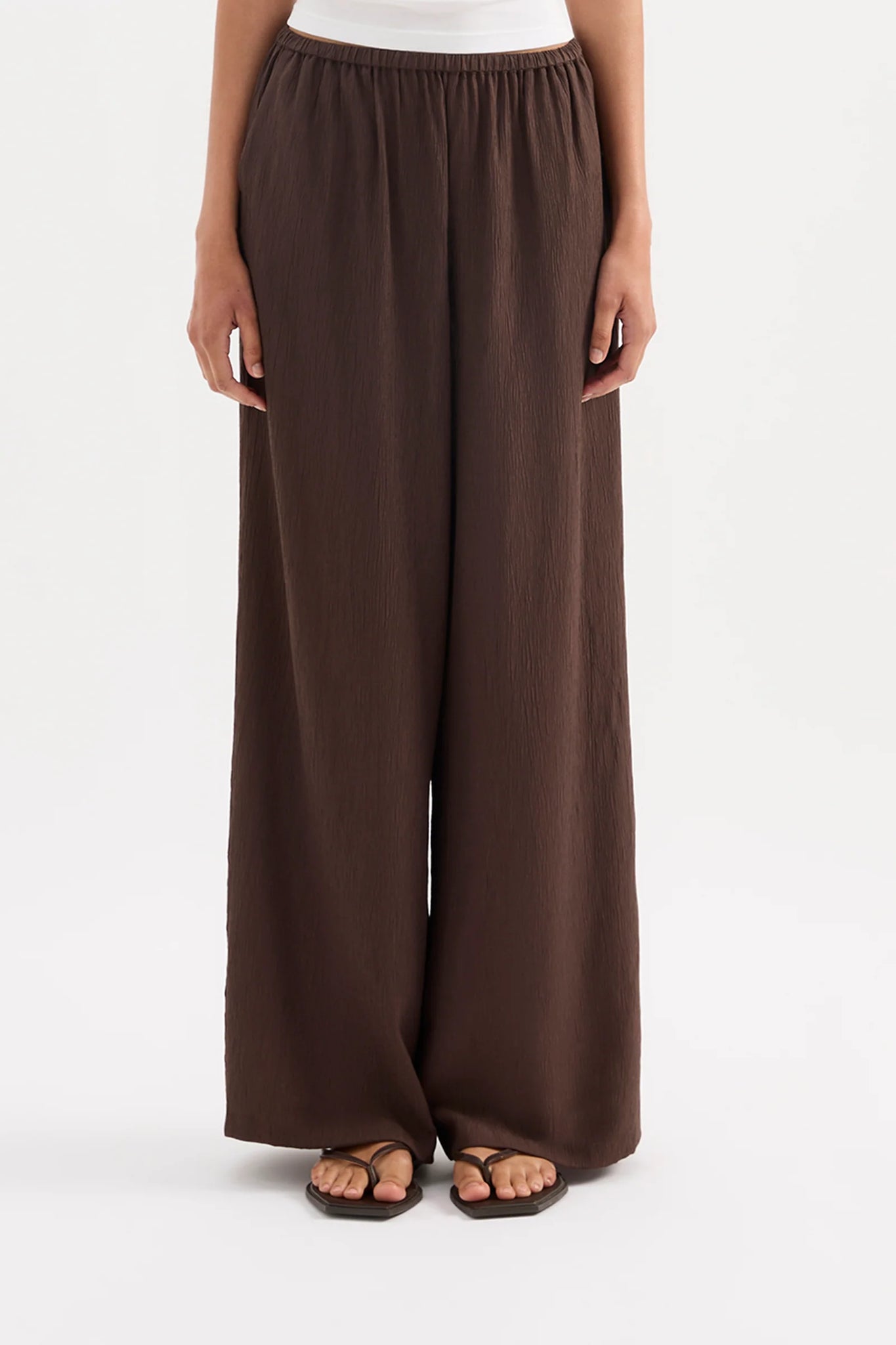 The Winfield Pant is made from a crinkle textured fabric which has a dry, lightweight hand feel. The silhouette is relaxed with a wide full length leg. Features include an elasticated waistband and side seam pockets.