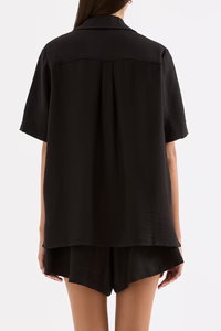 The Mona Shirt is crafted from a viscose blend fabrication that has a soft, smooth hand feel. This oversized shirt features a traditional shirt collar, front two button closure and slits at hem.