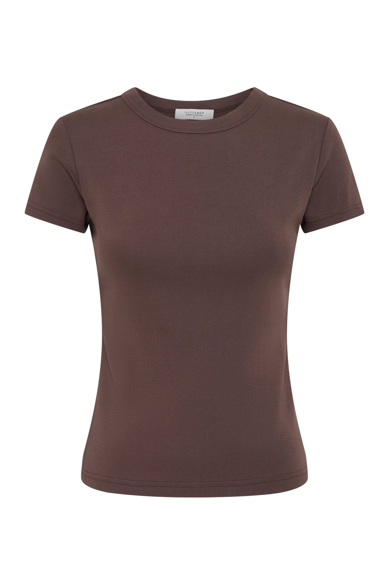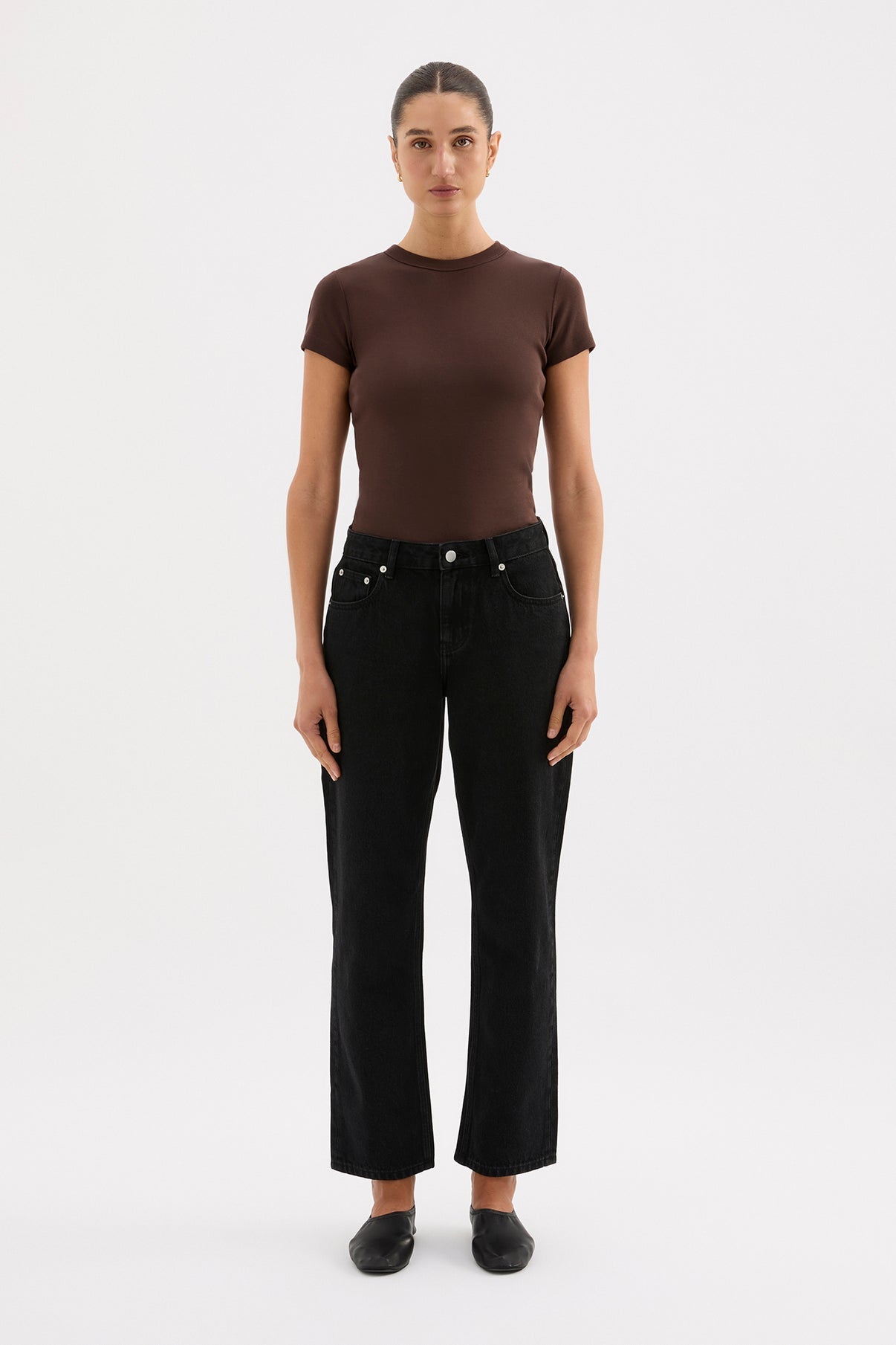 The Organic Baby Tee is made from a lightweight organic cotton jersey, which has a soft, breathable hand feel. The silhouette is a flattering close fit and finishes at the hips. Features include a crew neck, and short, fitted sleeves. This can be tucked in or worn over midrise bottoms.